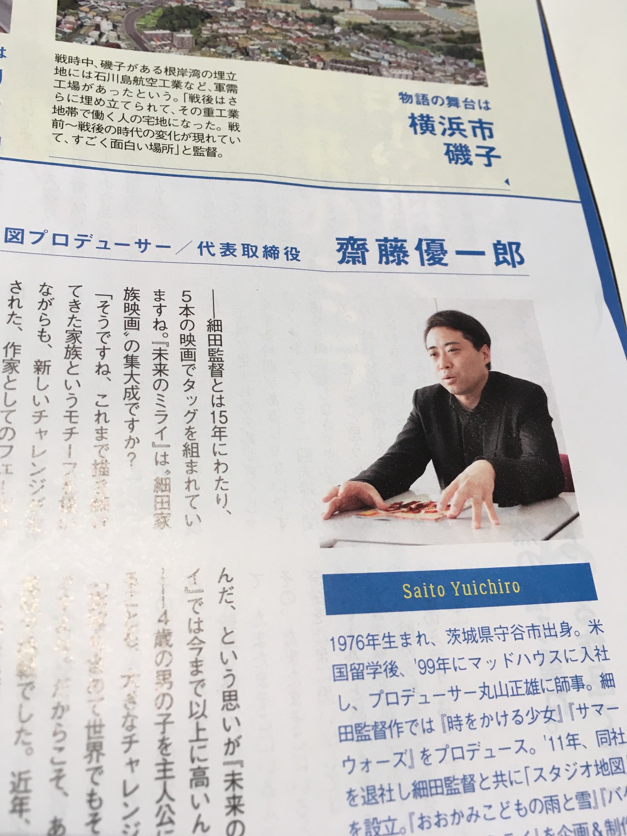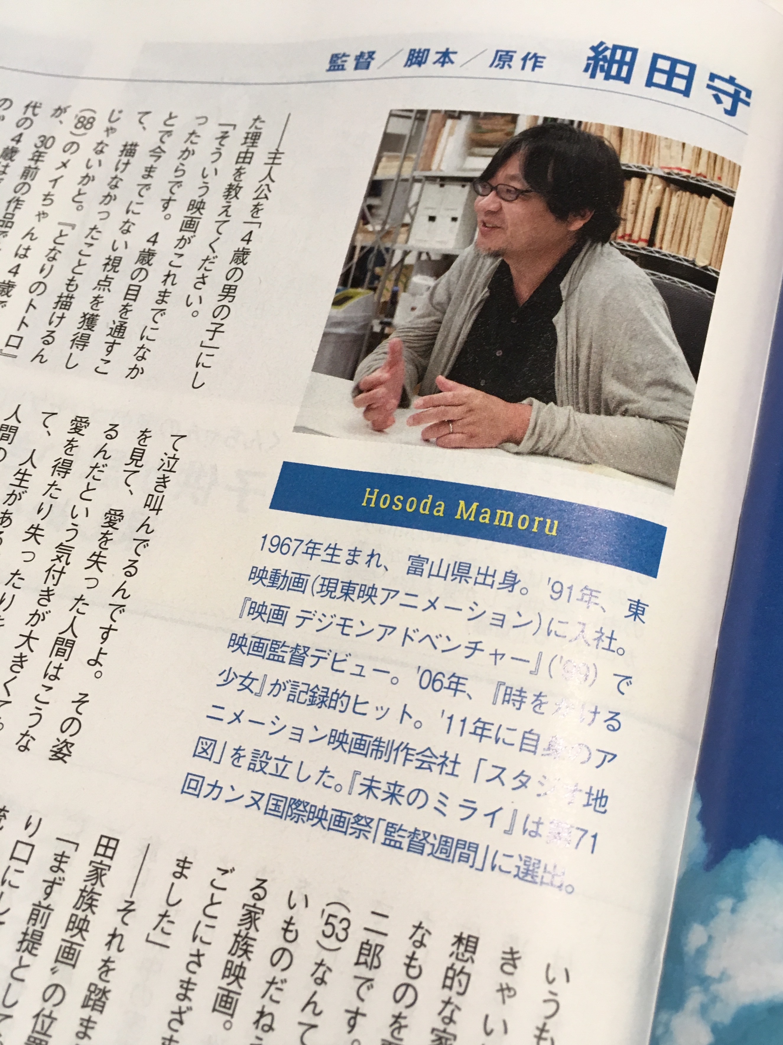 「DVD&動画配信でーた」2018年7月号で、『未来のミライ』(7/20公開)の細田守監督と齋藤優一郎プロデューサーにインタビューさせていただきました! 私が(というか皆が)常々思っている「なぜそんなに家族モチーフの映画ばかり作るのか?」の理由が、おふたりの言葉から明らかになっているかと思います。