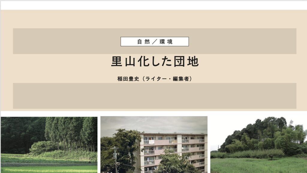 私の担当は「自然/環境」。題して「里山化した団地」。