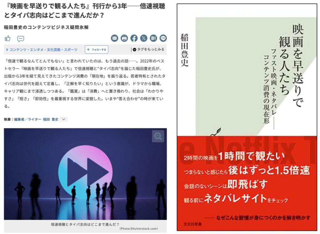 『映画を早送りで観る人たち』刊行から3年──倍速視聴とタイパ志向はどこまで進んだか?【 稲田豊史のコンテンツビジネス疑問氷解】
