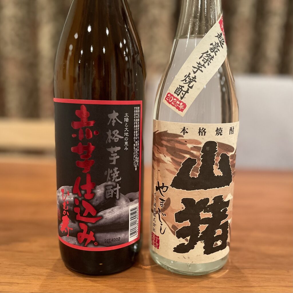 今回の戦果。両方とも芋焼酎で、左の蔵元は東村アキコ先生の地元・串間市にある寿海酒造。