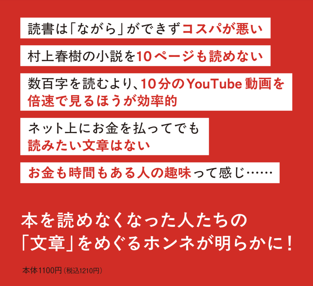 『本を読めなくなった人たち コスパとテキストメディアをめぐる現在形』中公新書ラクレより2月9日刊行