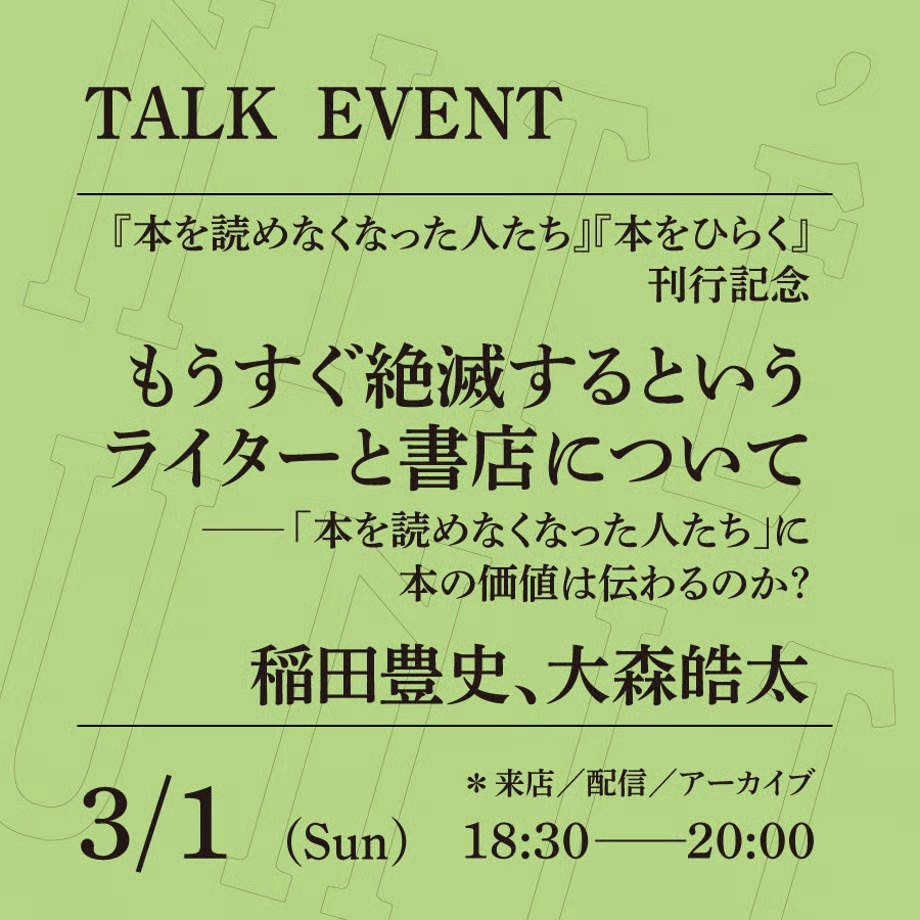 2026.3.1 三鷹UNITÉ(ユニテ)でトークイベント『本を読めなくなった人たち』刊行記念