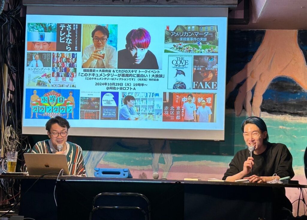 阿佐ヶ谷ロフトA「このドキュメンタリーが悪魔的に面白い!大放談」。大島育宙さん、てれびのスキマさん、稲田は初対面の3人でしたが超盛り上がりました!